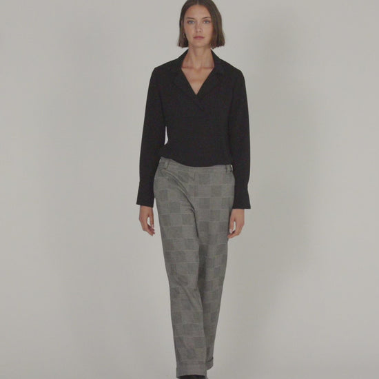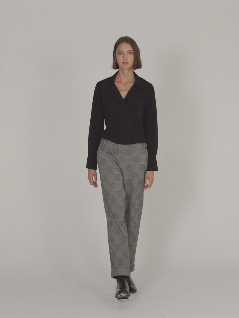 Blouse with a lapel collar and long sleeves. Button closure at the cuffs. Made from a flowing fabric. Regular fit.