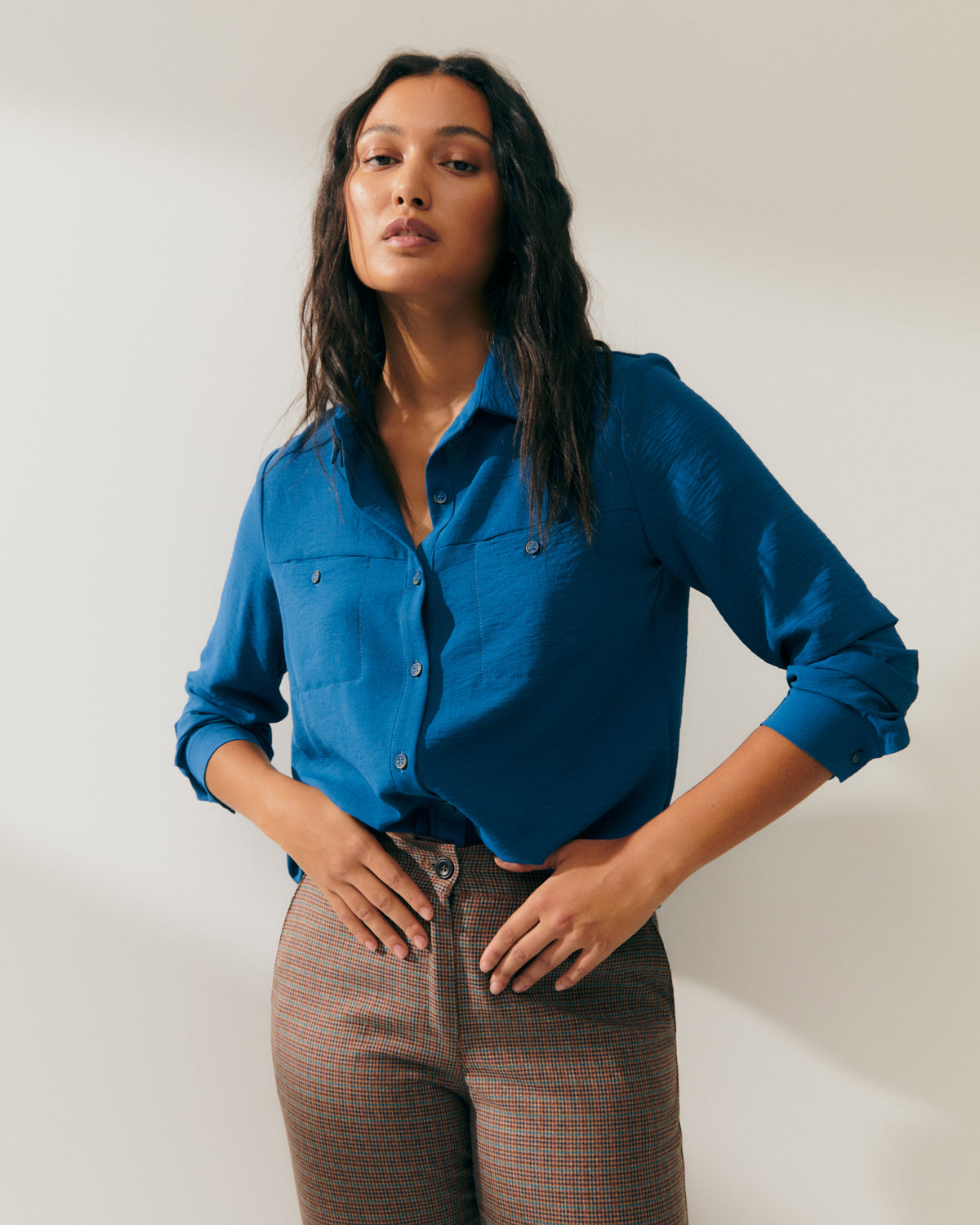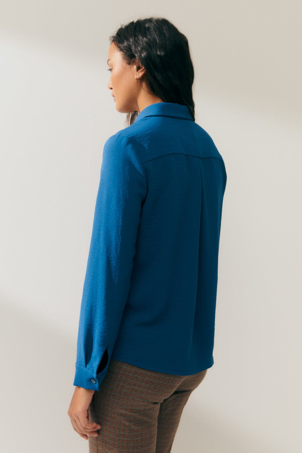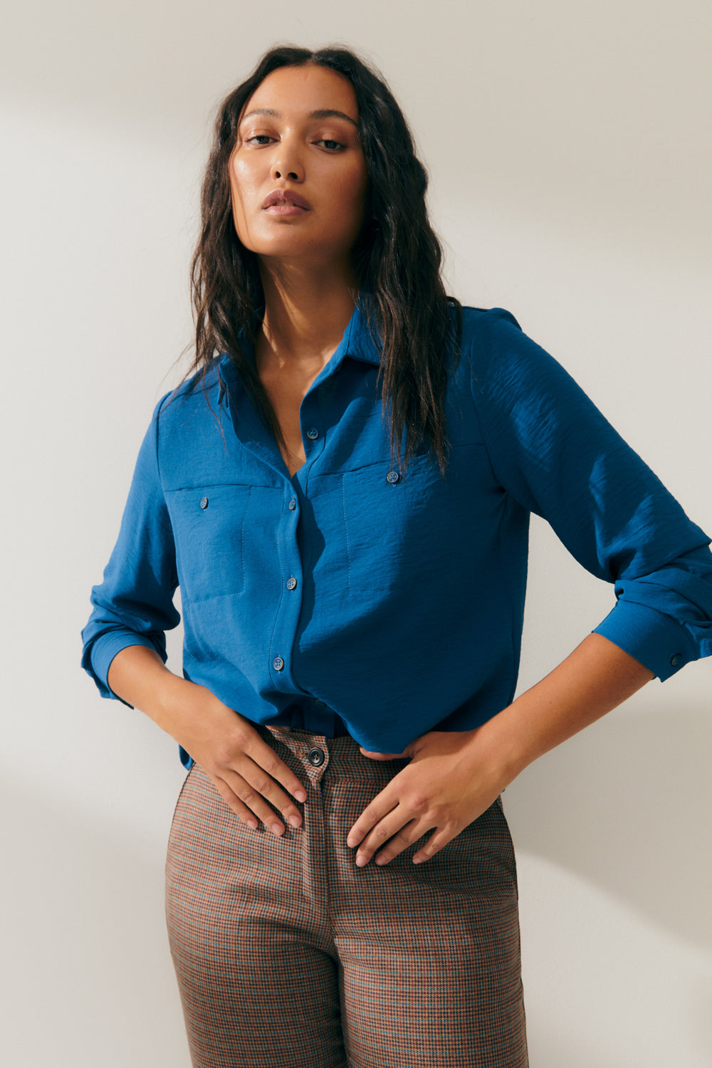 Long-sleeved shirt with a shirt collar and single-button chest pockets. Button-front closure and single-button cuffs. Regular fit.