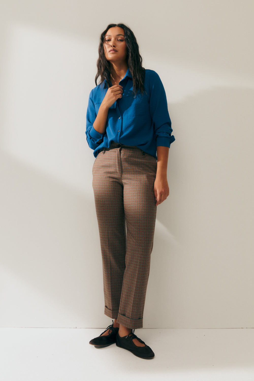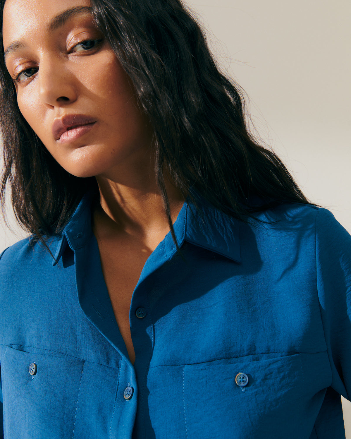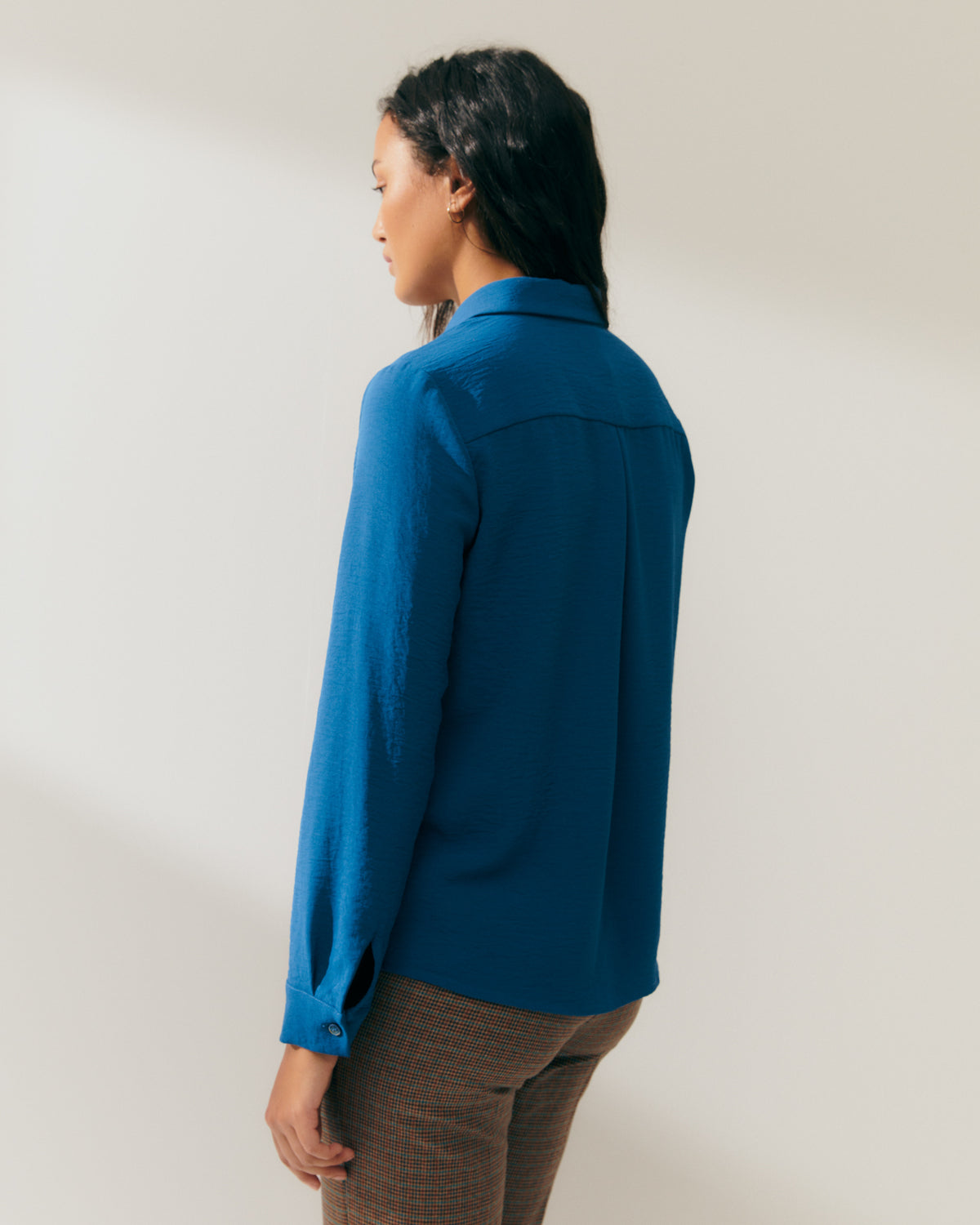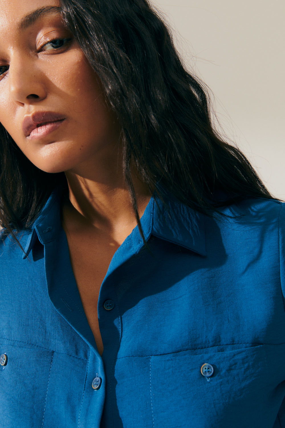 Long-sleeved shirt with a shirt collar and single-button chest pockets. Button-front closure and single-button cuffs. Regular fit.