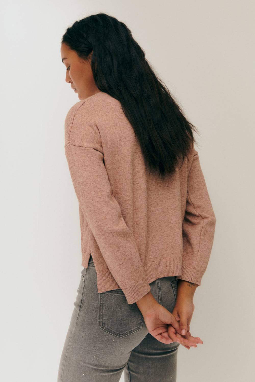 Women's fancy knit sweater with round neck and long sleeves