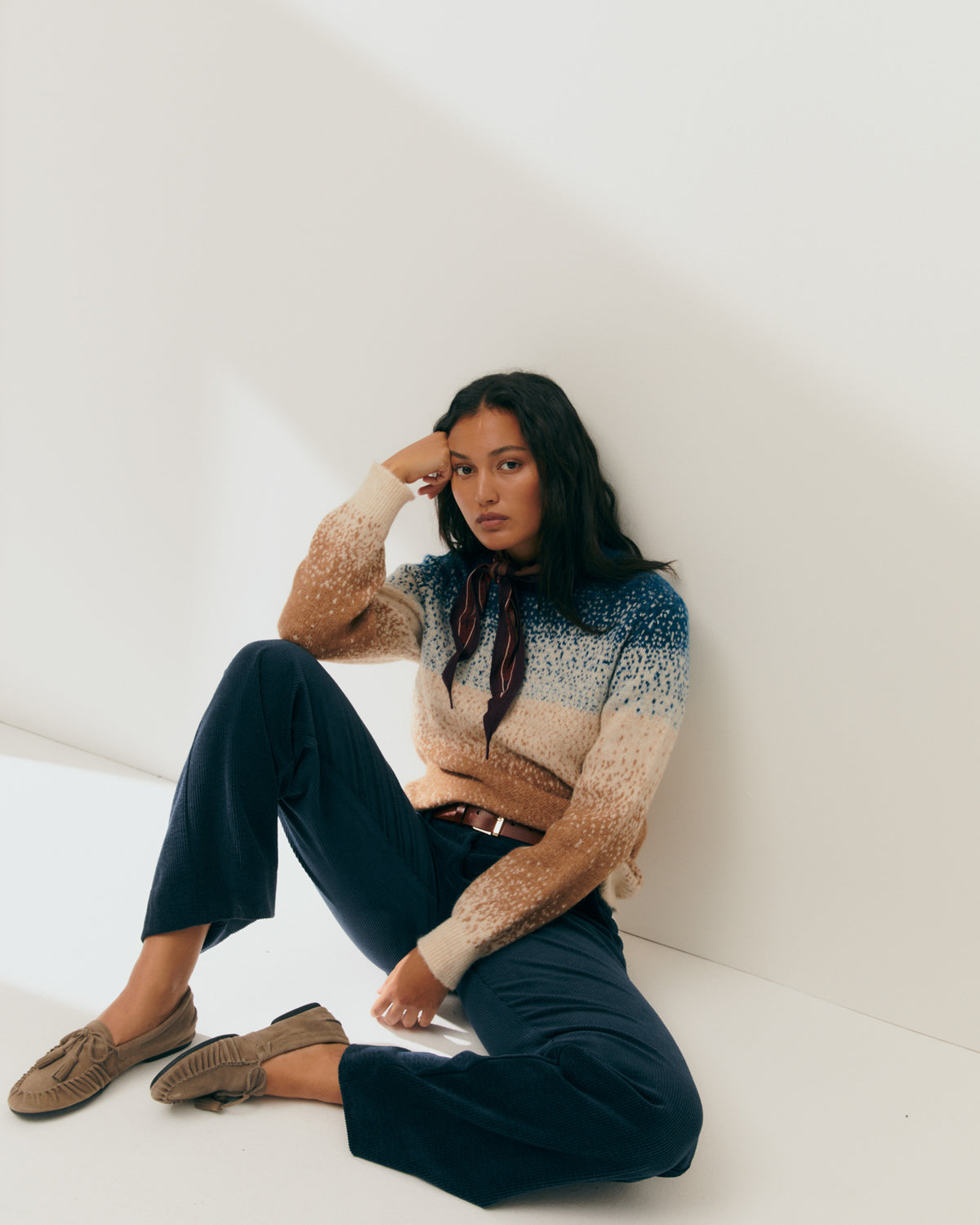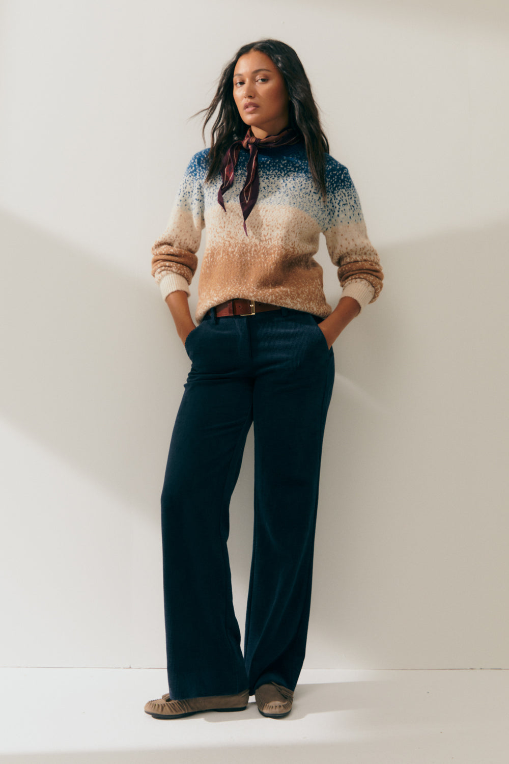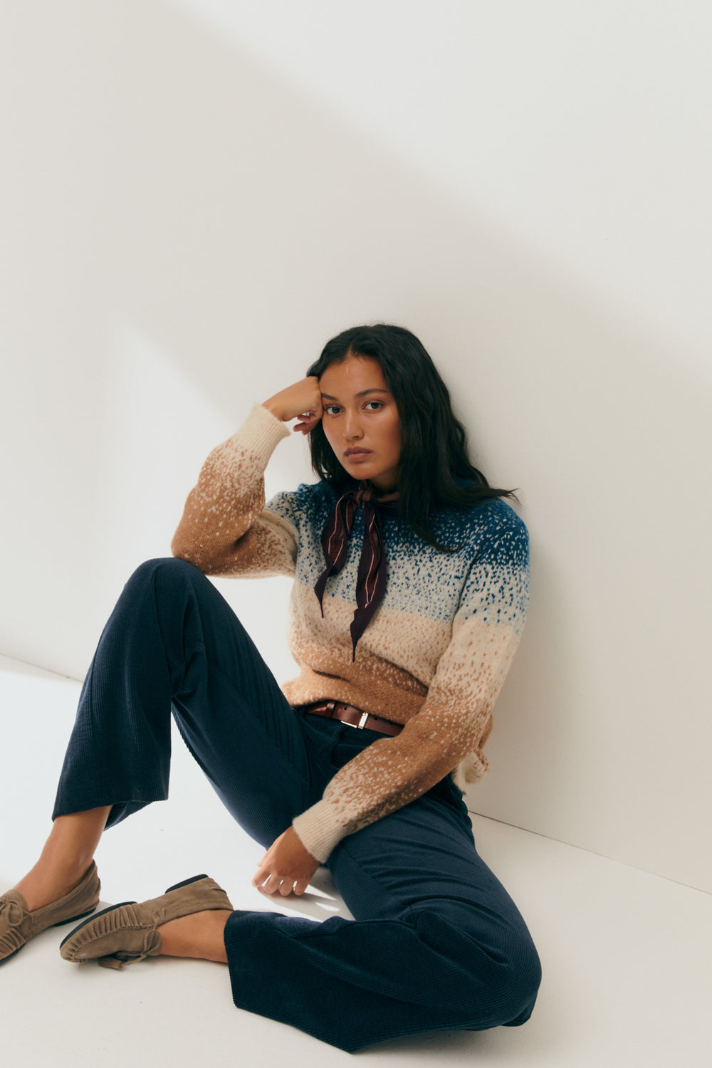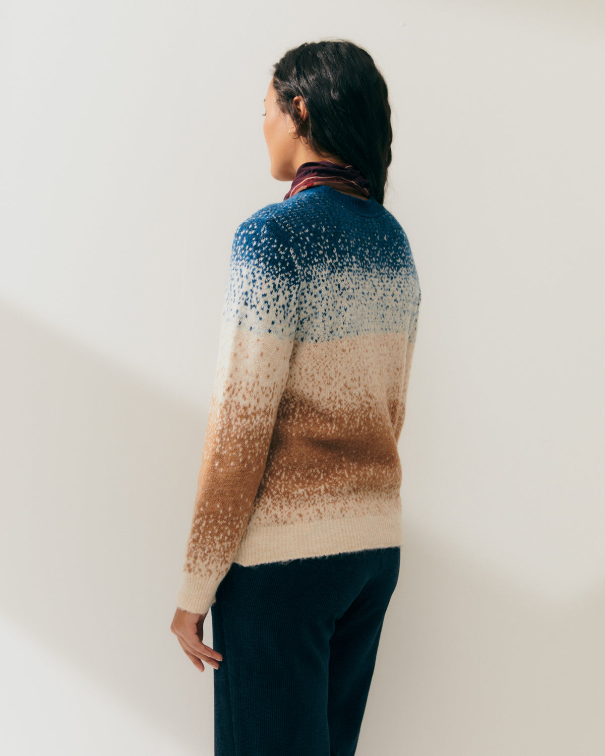 Long-sleeved, round-neck knit sweater. The color combination and blend of yarns play a central role, giving it a warm and special look. Regular fit.
