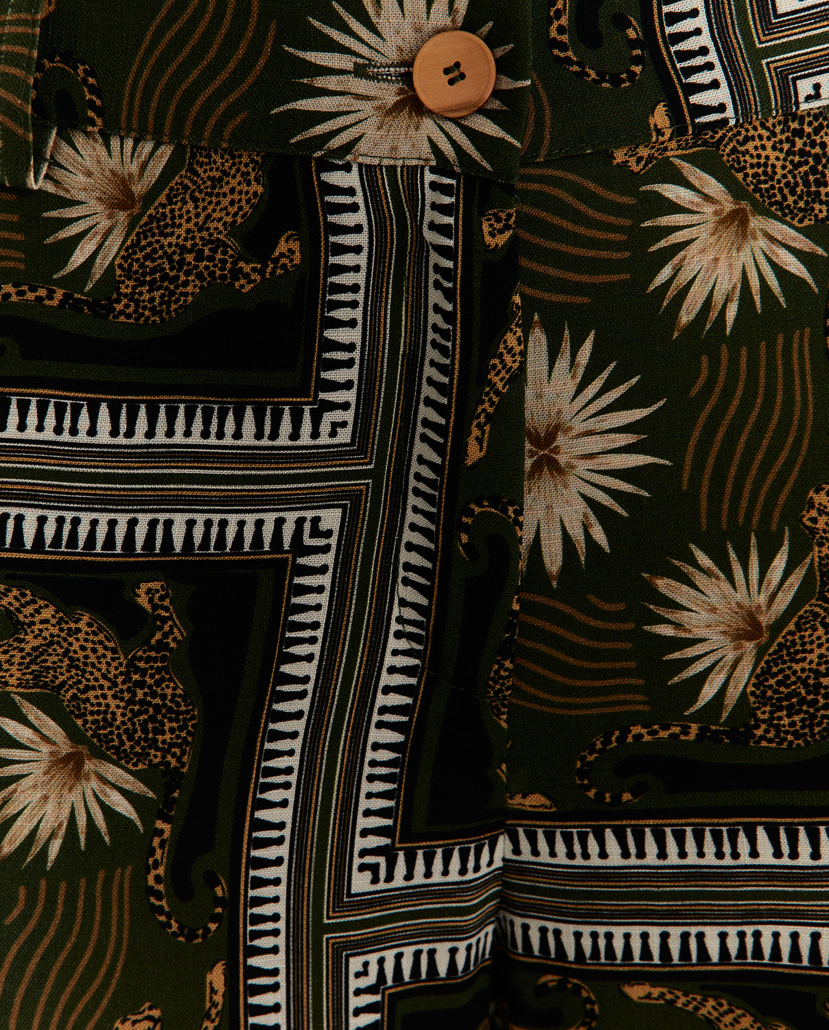 Pantalón recto estampado de tiro medio. Cierre con botón y cremallera. Incluye bolsillos laterales convirtiéndole en una prenda práctica, actual y muy favorecedora.