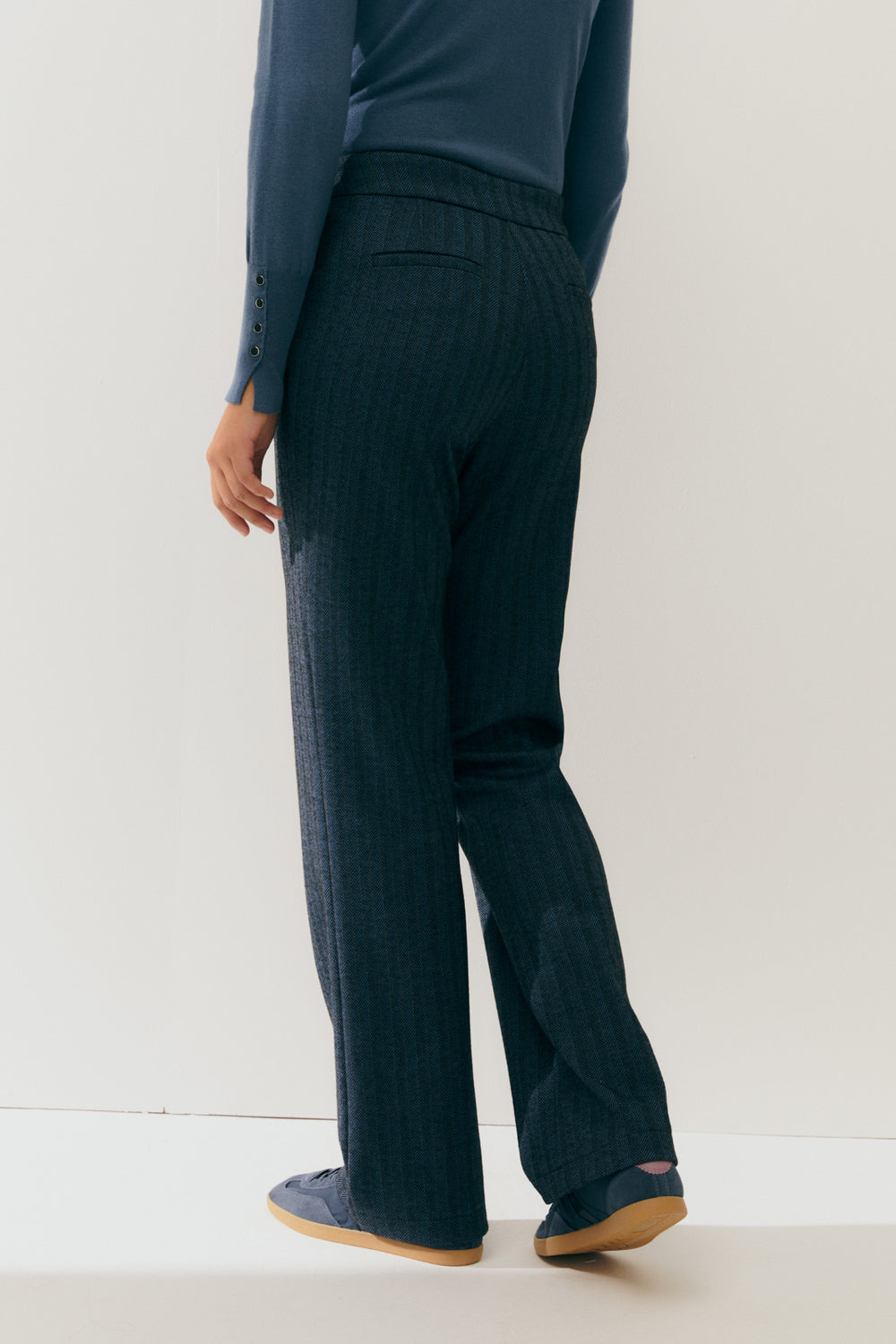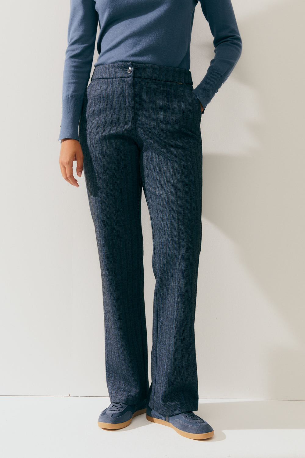 Straight-leg trousers in a herringbone pattern. Side pockets. Front zip and button closure. Pair with the matching blazer for a contemporary two-piece suit.
