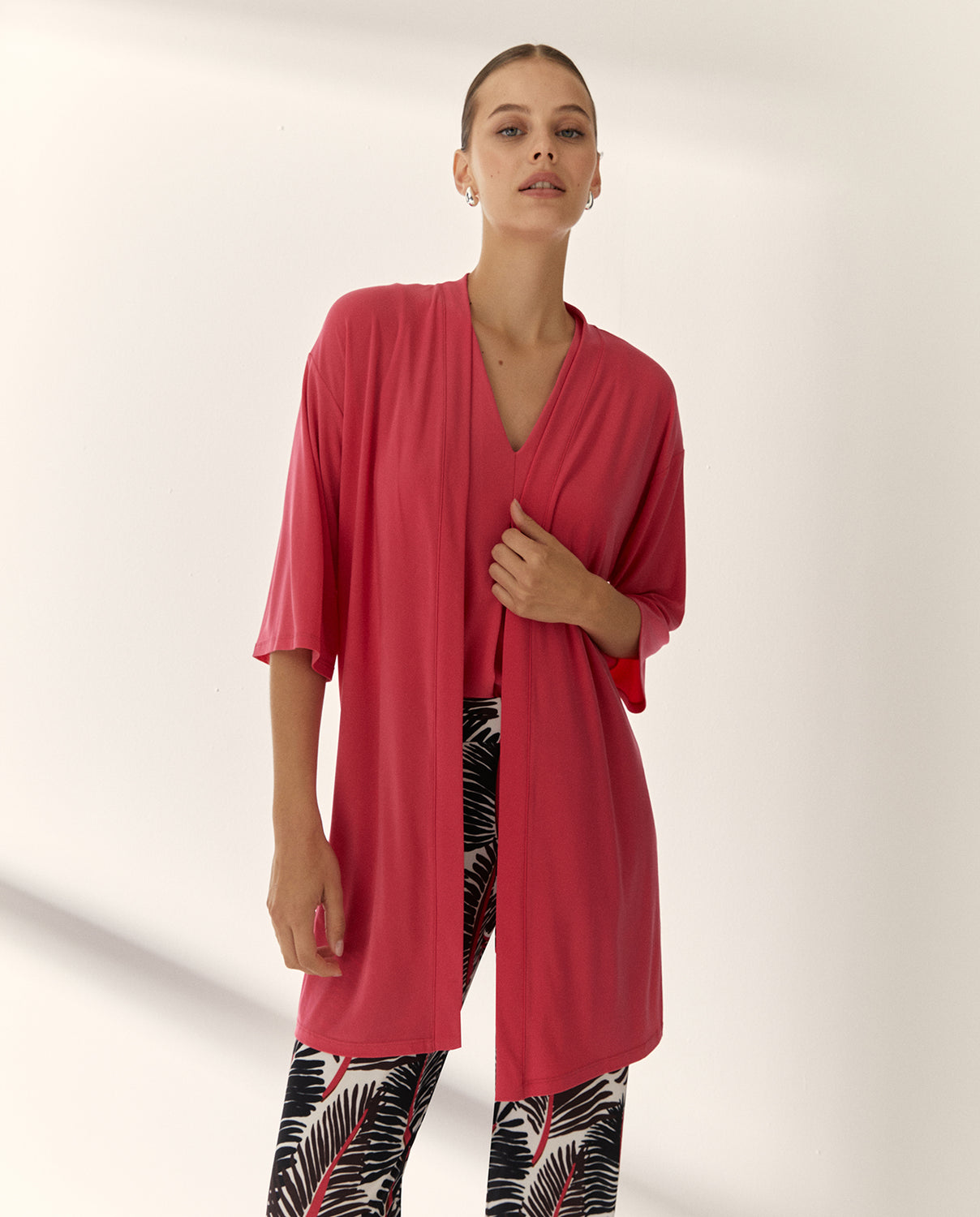 Chaqueta en punto liso de manga francesa. Una prenda ligera y versátil ideal para elevar cualquier estilismo. Puedes encontrar su camiseta a conjunto y conseguir un tween set de los más confortable. Regular fit.