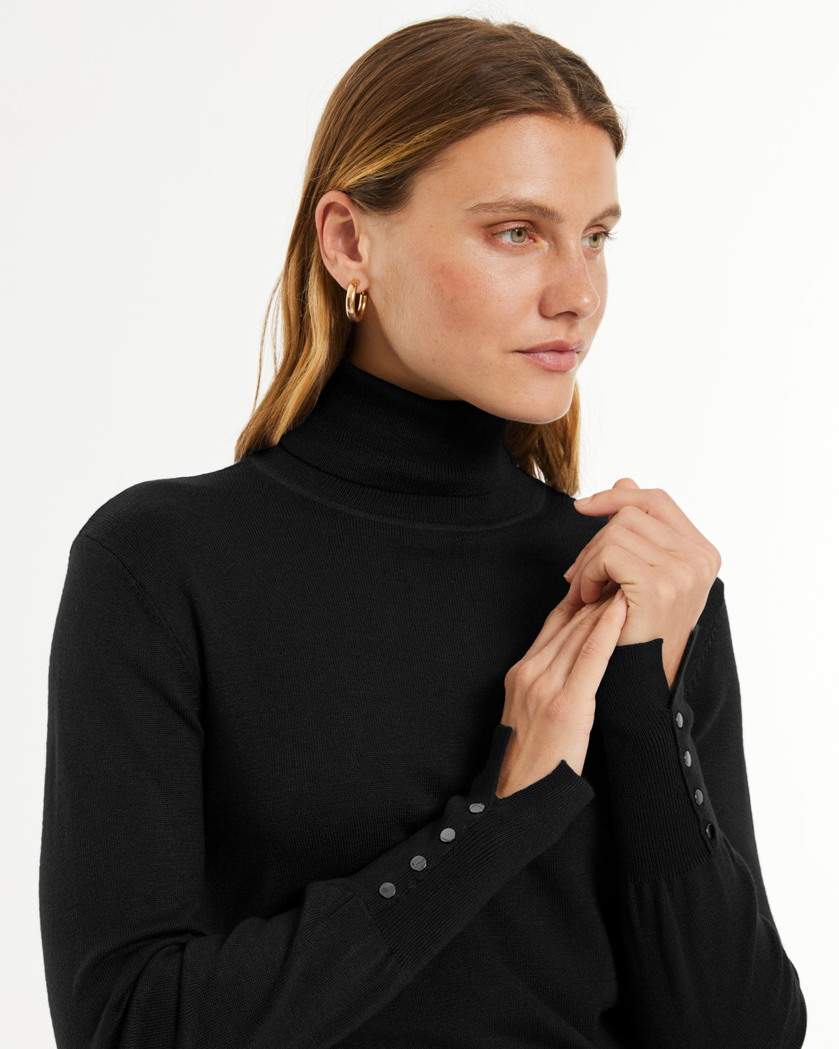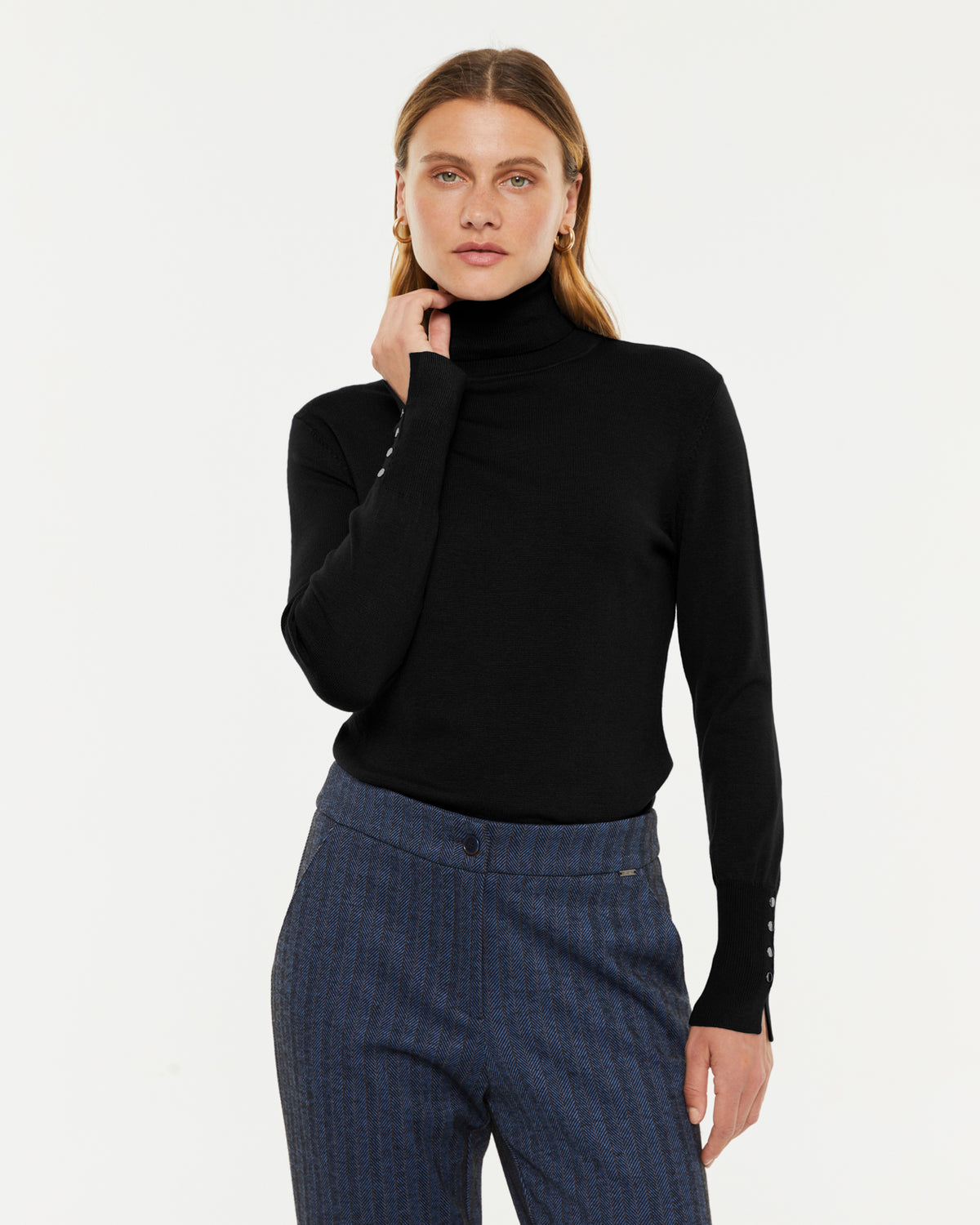Jersey básico ajustado de cuello alto. Detalle de botones metálicos en los puños. Es un jersey confortable de estilo atemporal que no puede faltar en tu armario. Es el jersey perfecto para combinar con todos tus looks. Regular fit.