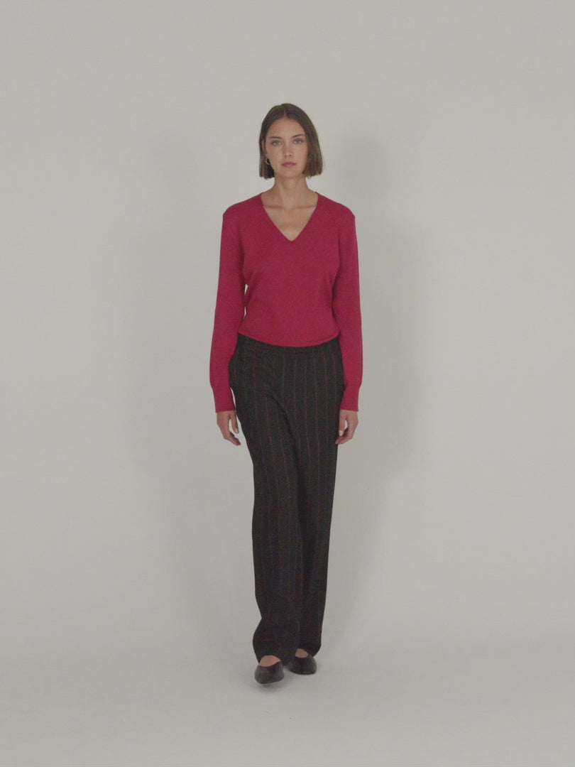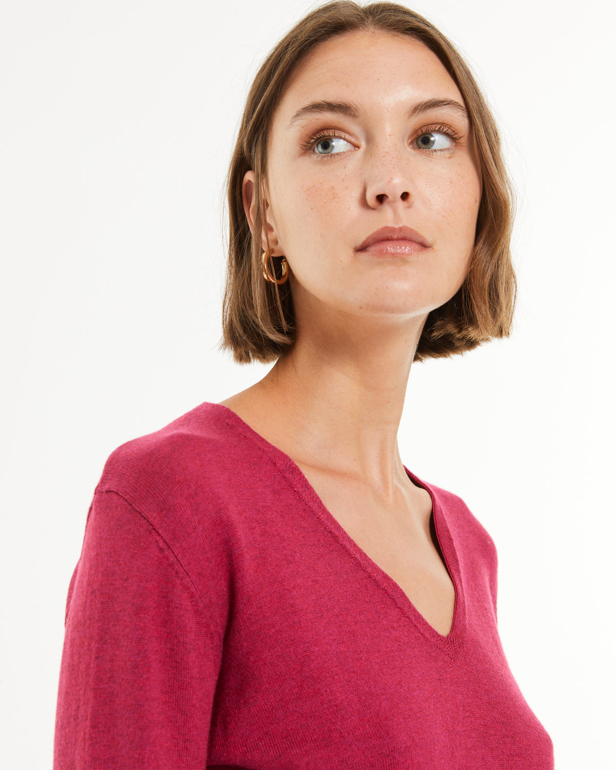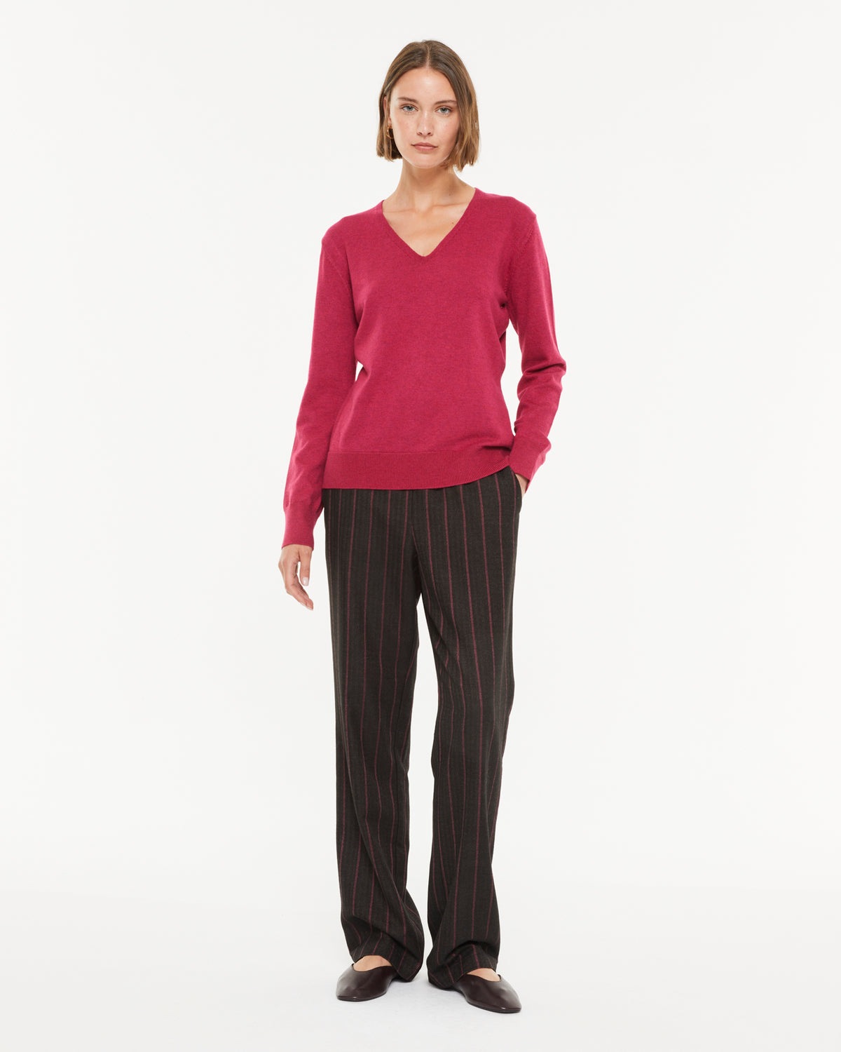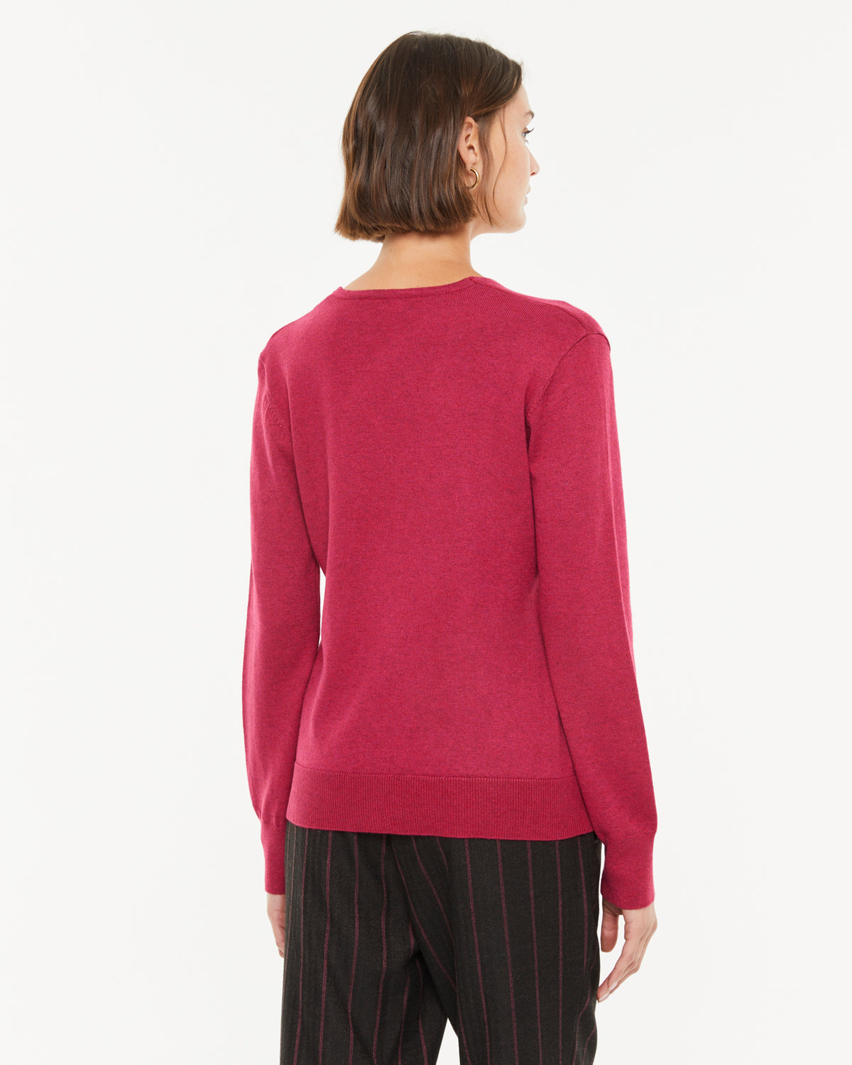 Jersey de punto liso, cuello pico y manga larga. Textura suave. Un básico imprescindible. Regular fit.