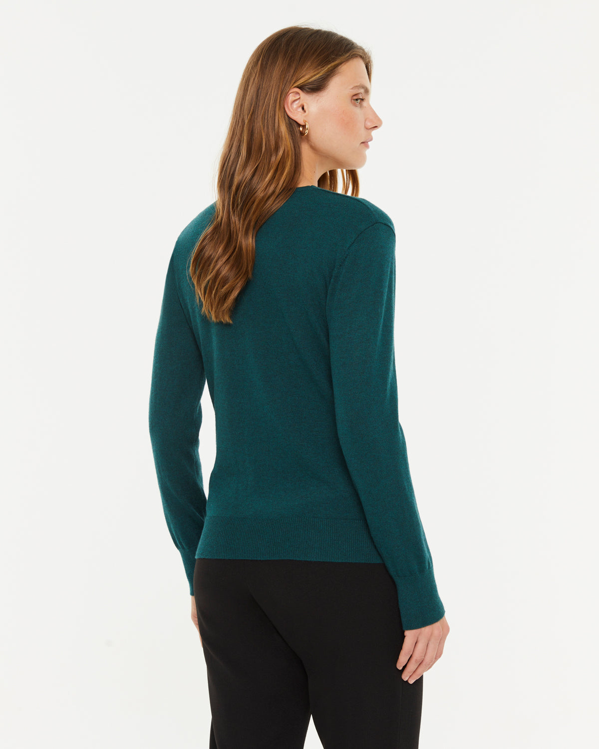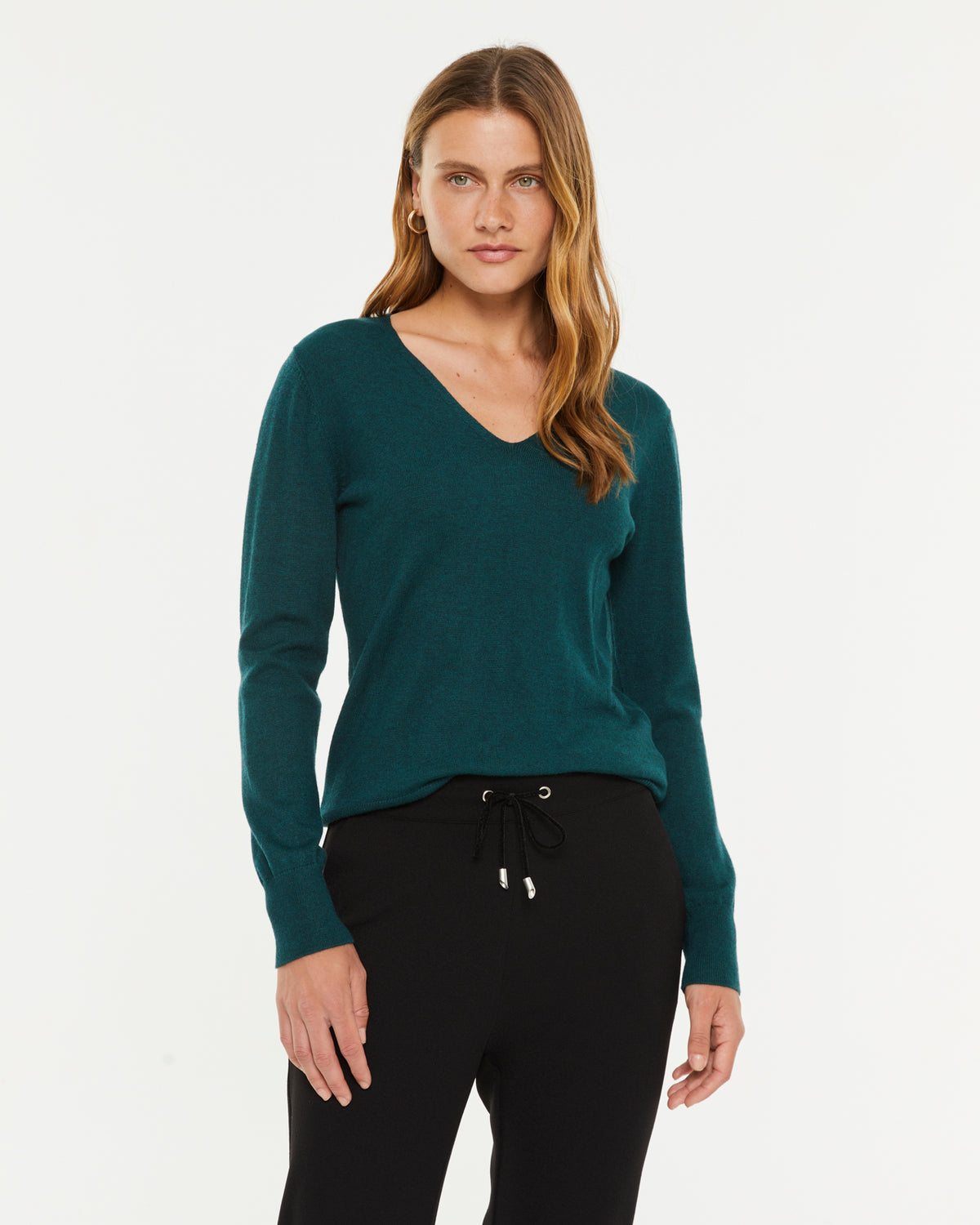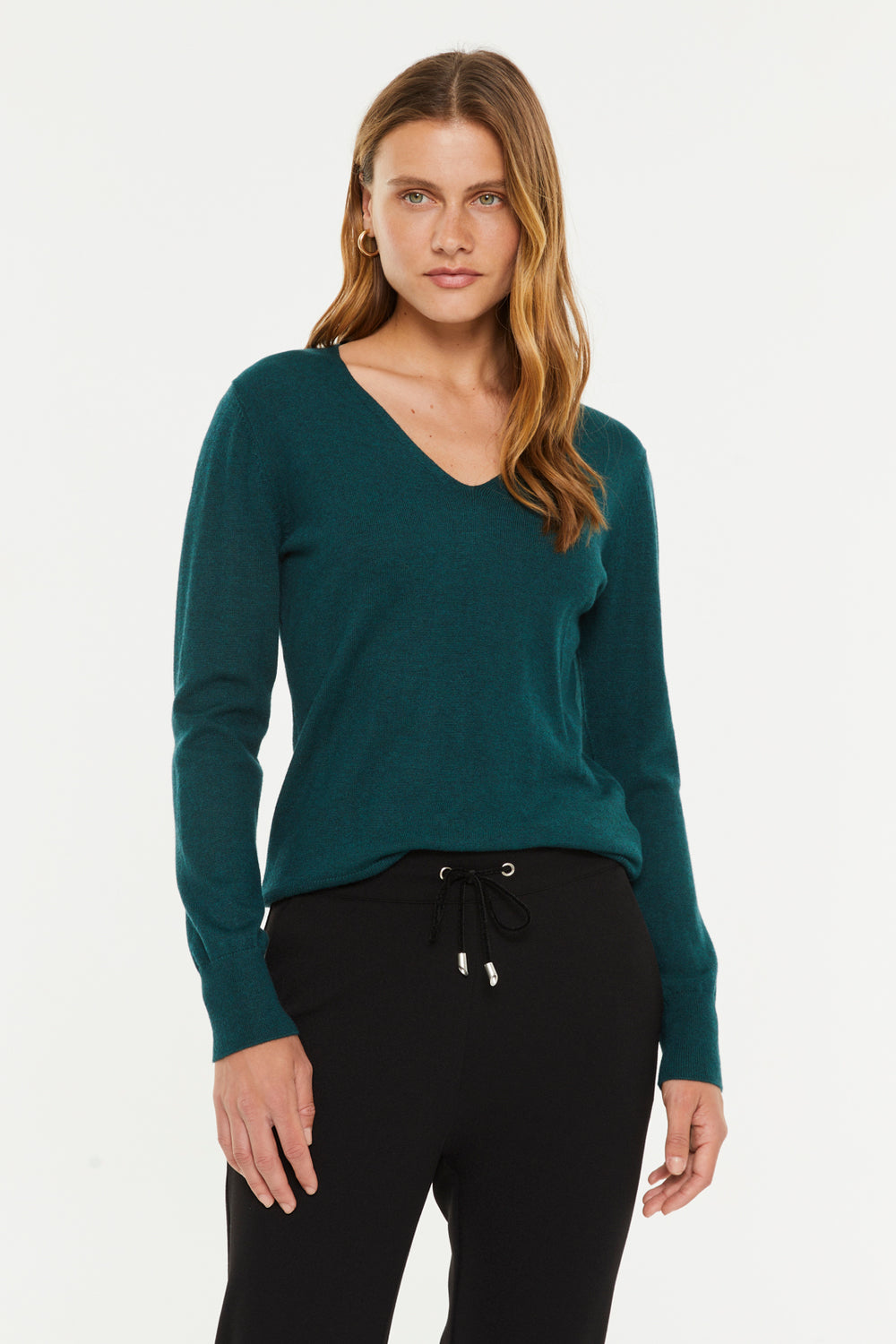 Jersey de punto liso, cuello pico y manga larga. Textura suave. Un básico imprescindible. Regular fit.
