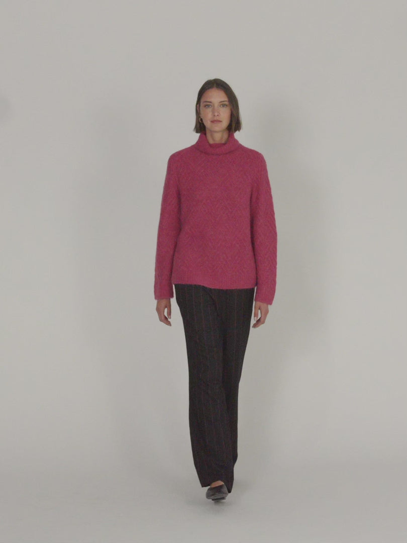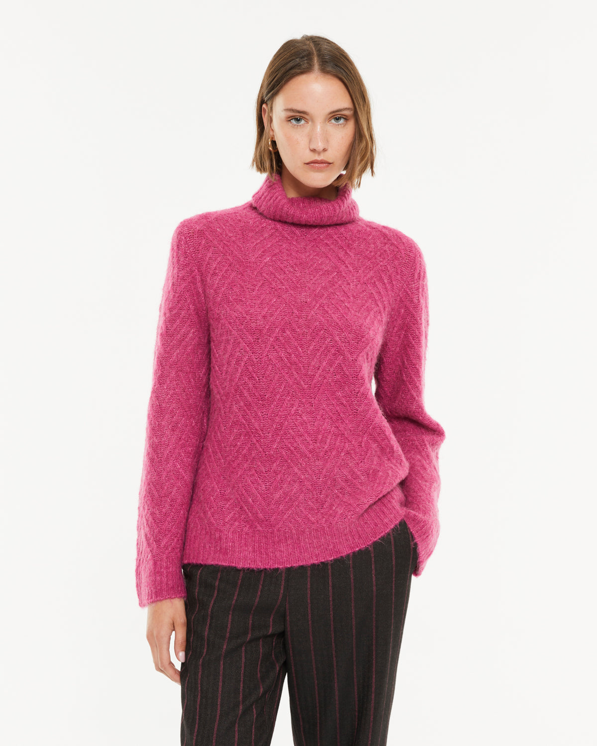 Jersey punto fantasía de cuello alto y manga larga. Regular fit.