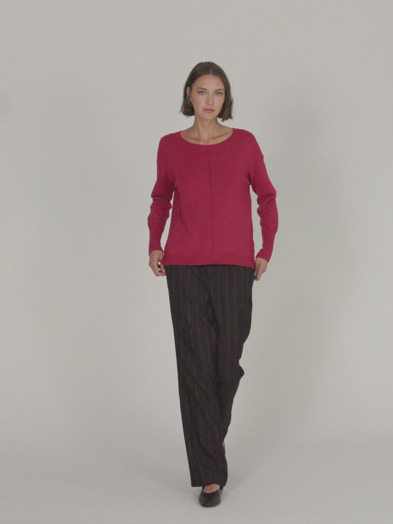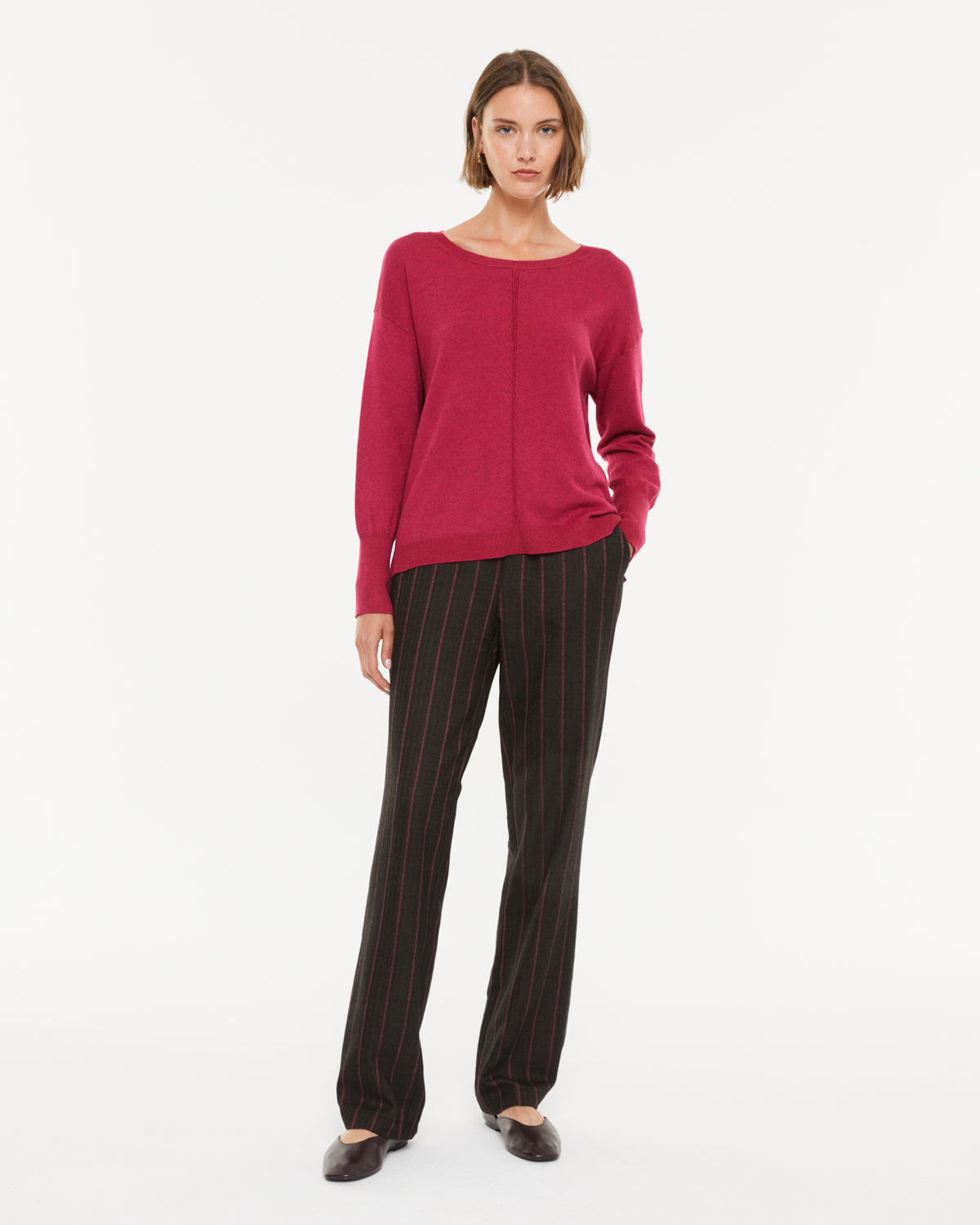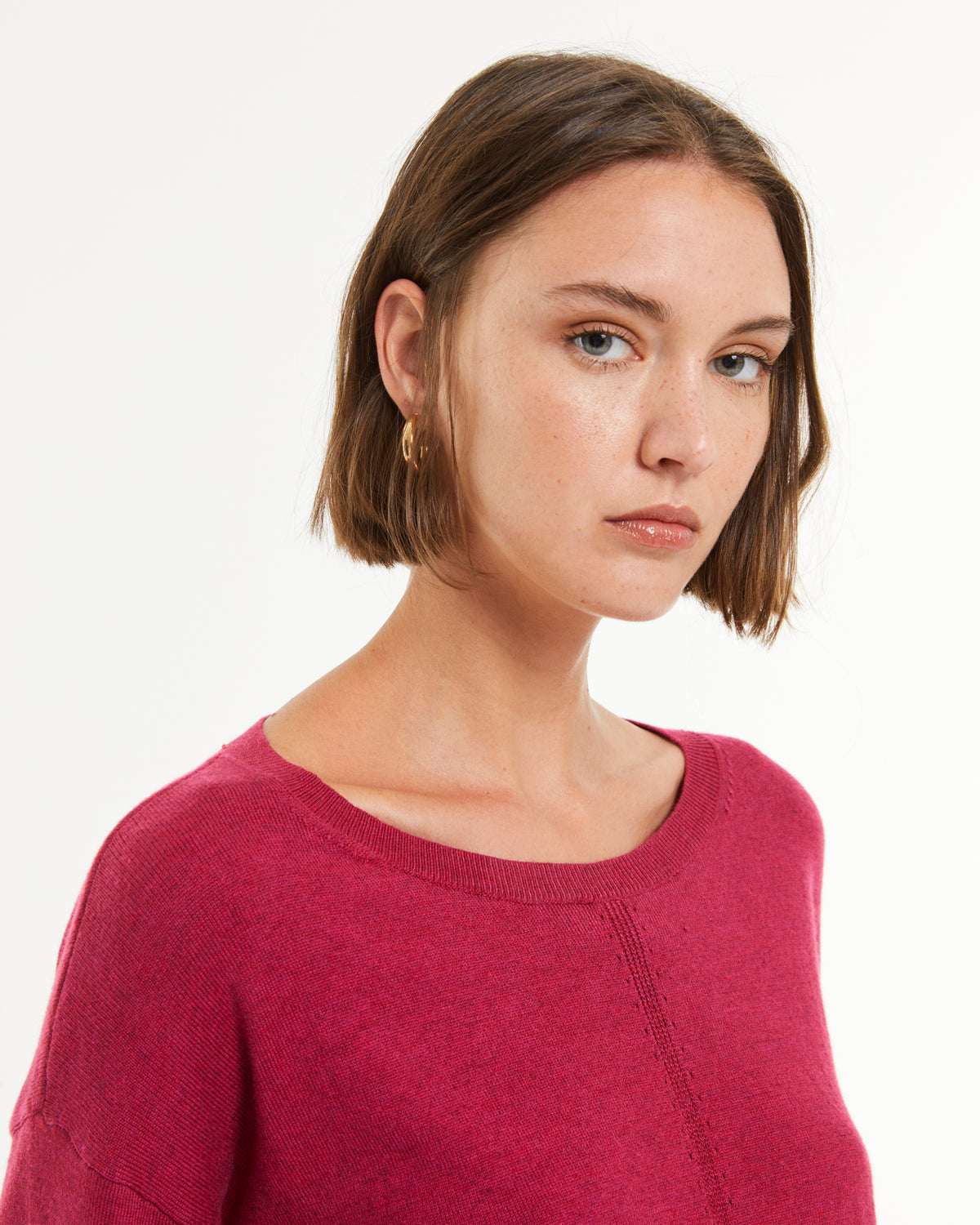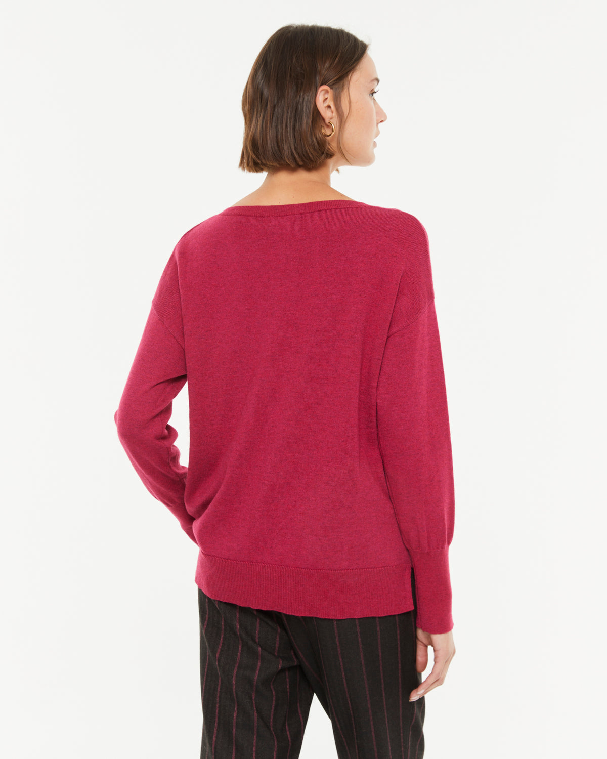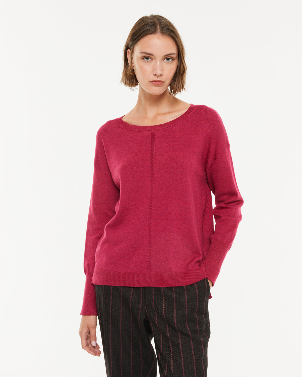 Jersey punto liso de manga larga, cuello redondo y puño alto. Detalle de desagujado en el centro de la parte delantera. Confección de canalé en cuello, puños y bajo. Regular fit.
