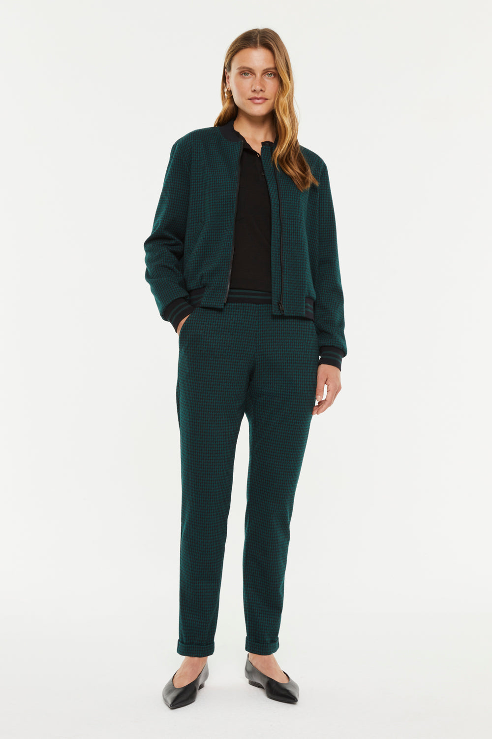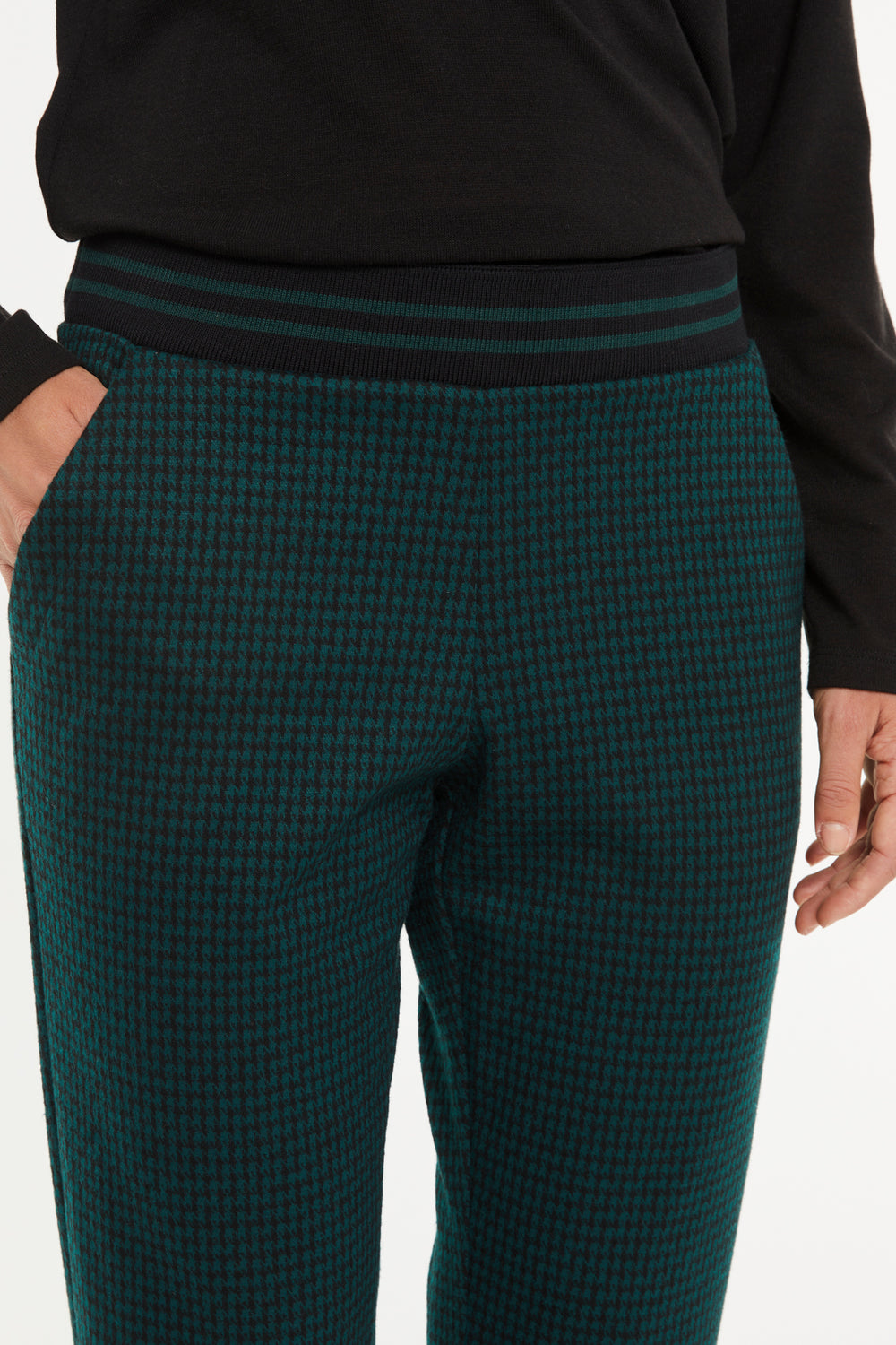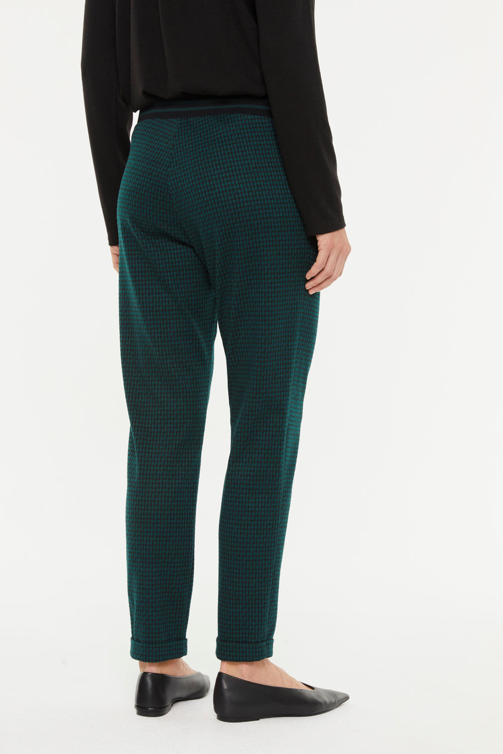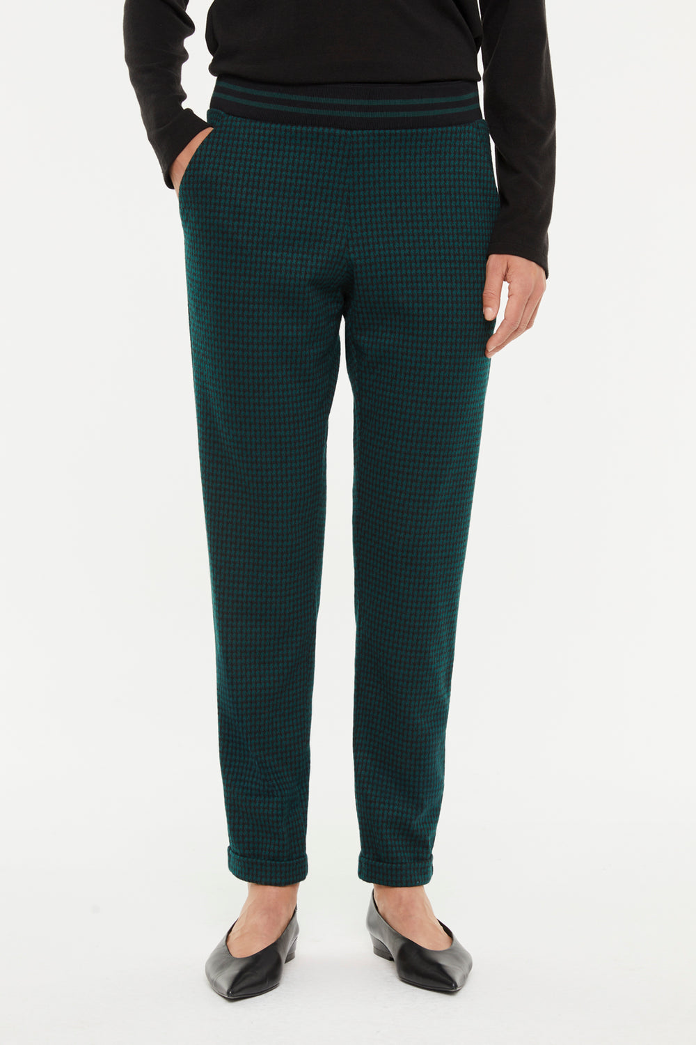 Pantalón recto en punto fantasía cuadros cintura elástica