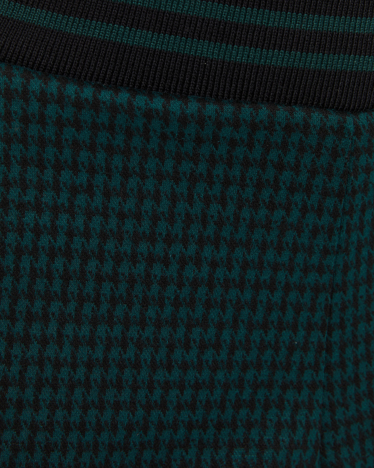 Pantalón recto de punto fantasía estampado cuadros, vuelta en el bajo y bolsillos laterales. Goma elástica en cintura.Pantalón muy confortable y versátil.