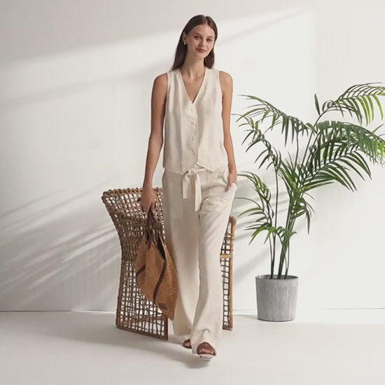 Top de mujer efecto chaleco. Cierre frontal con botones. La prenda por excelencia que no puede faltar en tu armario este verano. Puedes encontrar su pantalón a conjunto. Regular fit.
